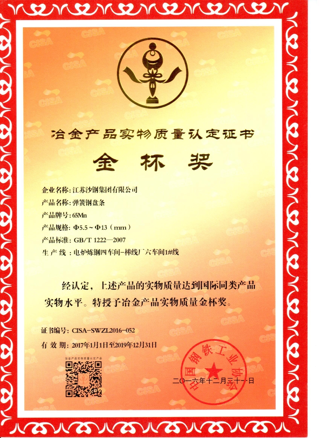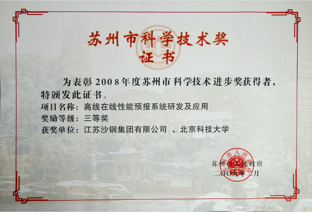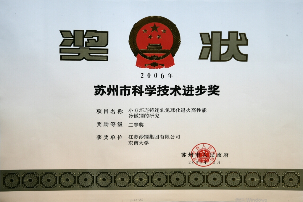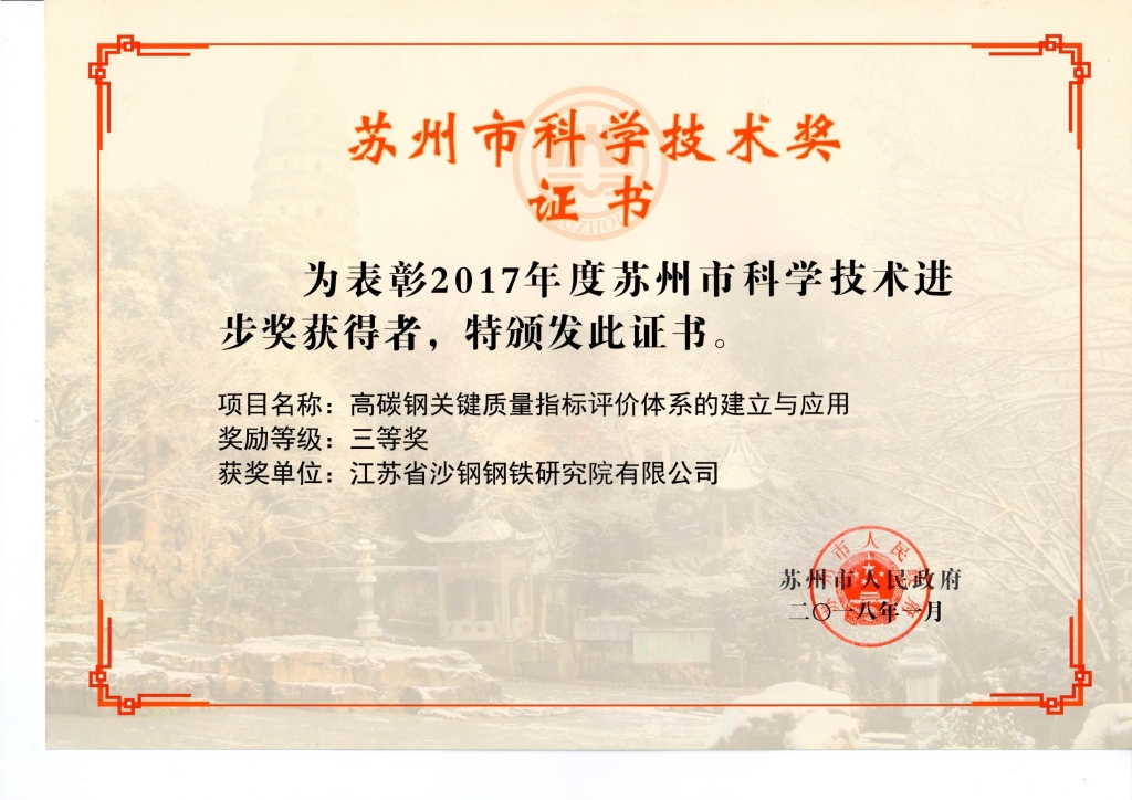蘇州市科學技術進步獎——高碳鋼關鍵質量指標評價體系的建立與應用