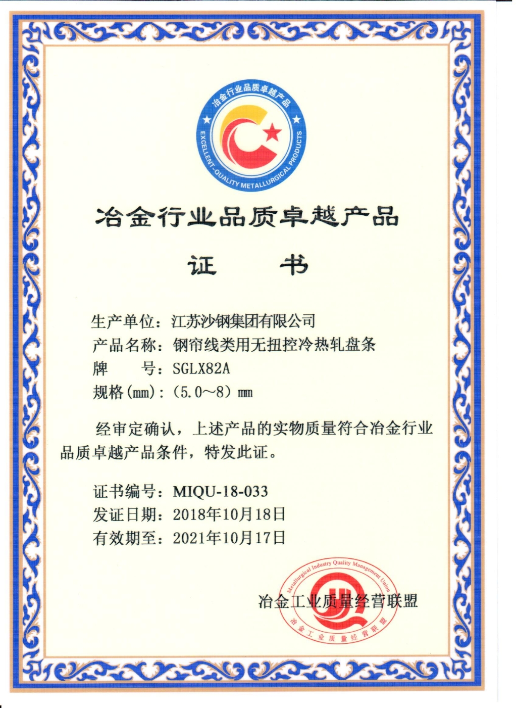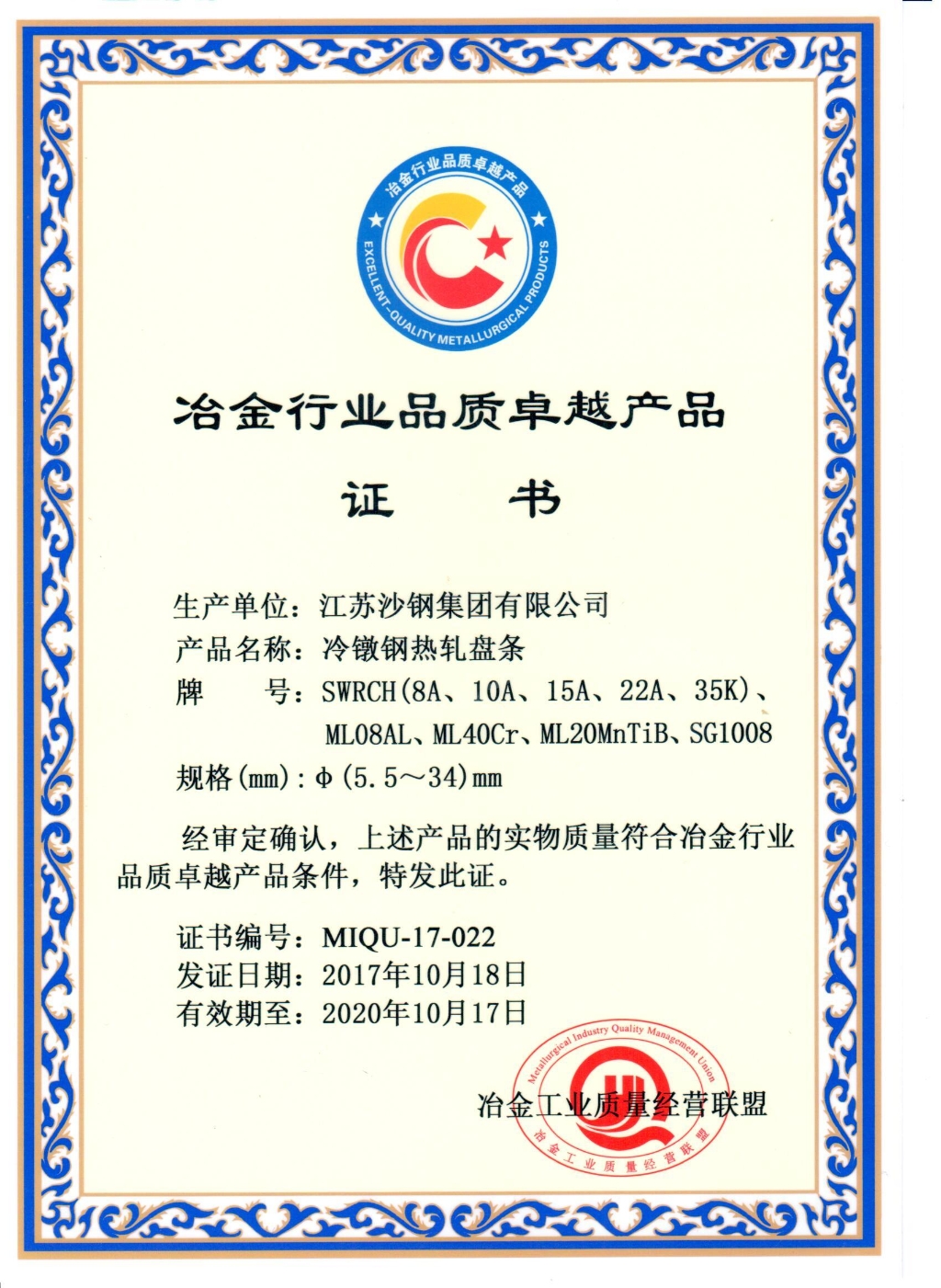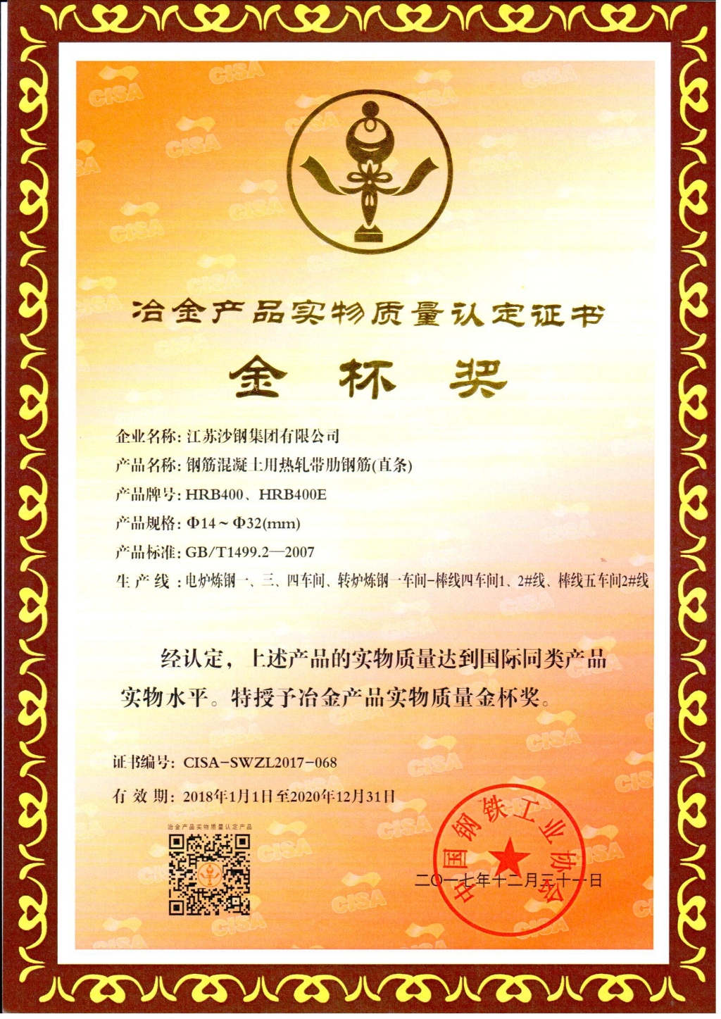 蘇州市科學技術進步獎——高碳鋼關鍵質量指標評價體系的建立與應用