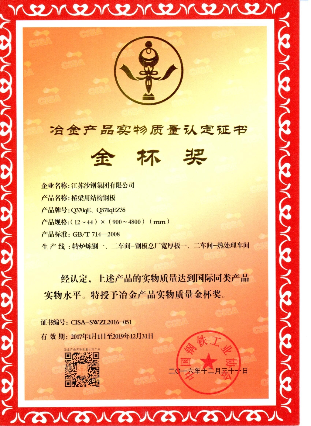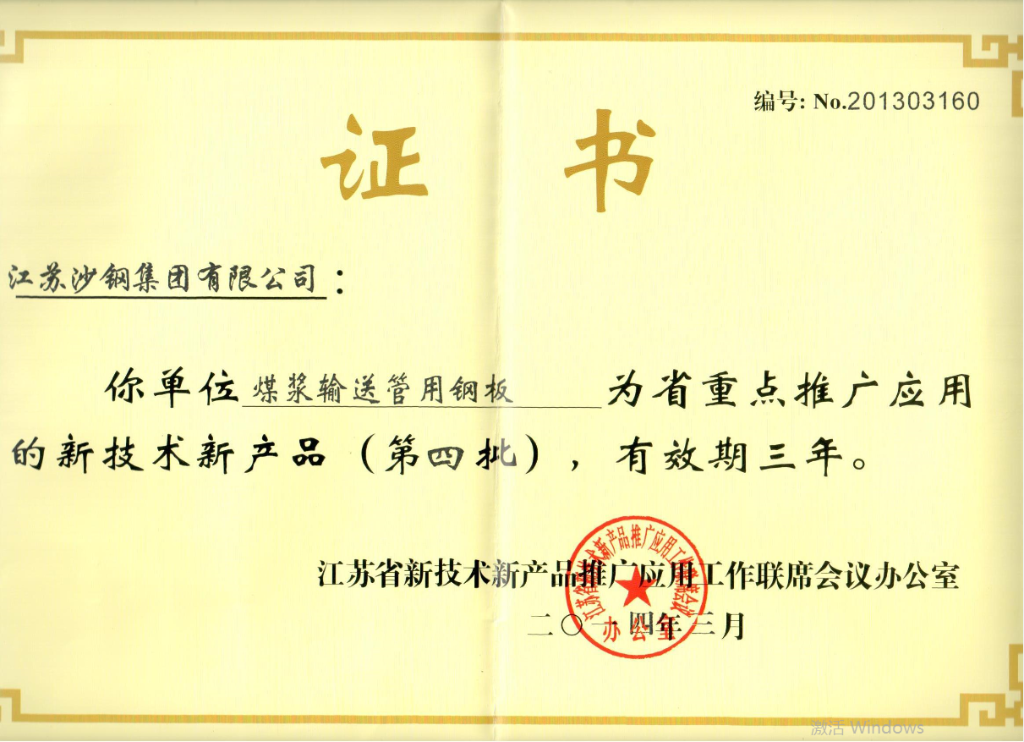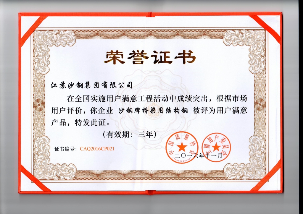 高新技術產品認定證書——低碳貝氏體型Q370qE橋梁鋼