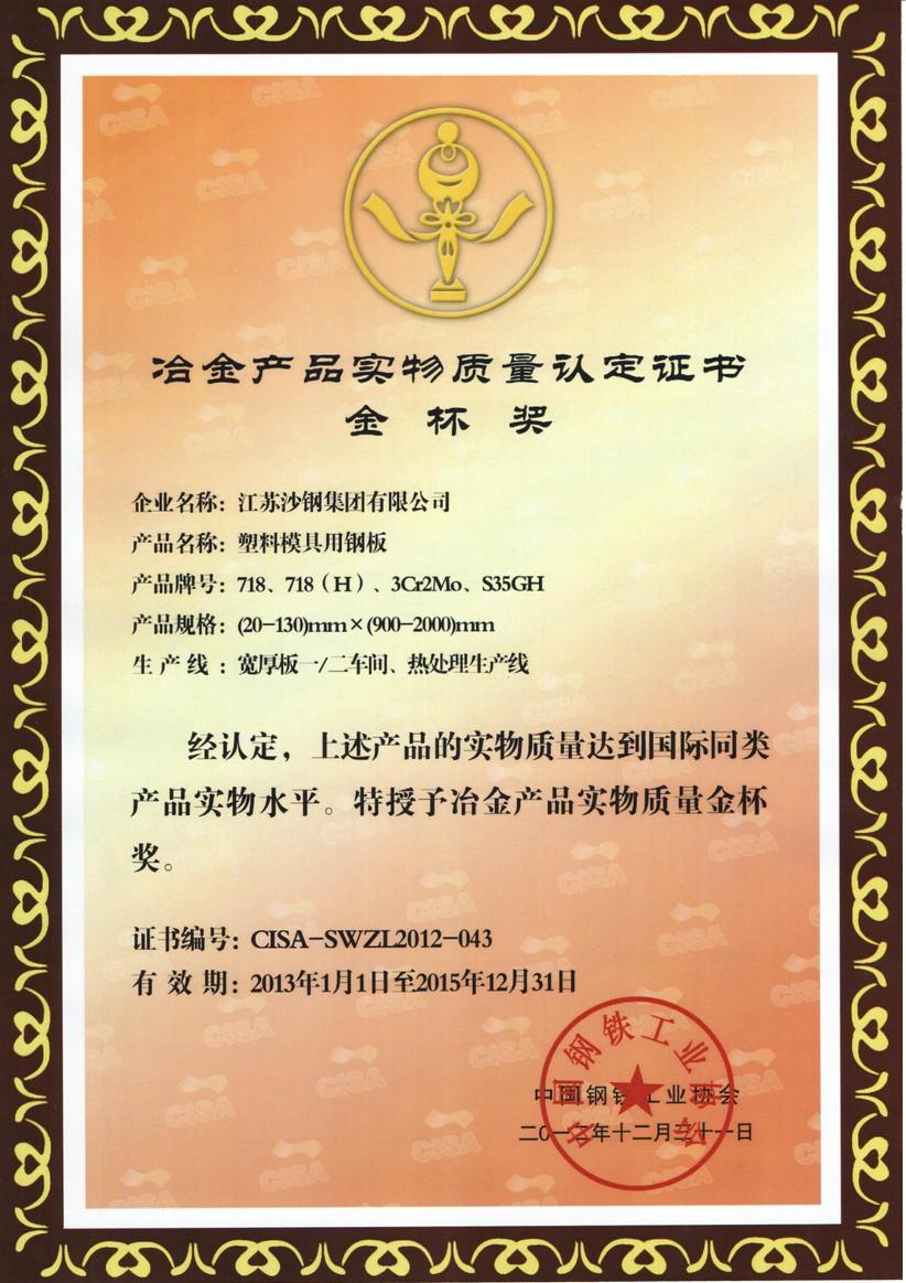 2014年度江蘇省科學技術獎三等獎——海洋工程用調質熱處理鋼板的開發