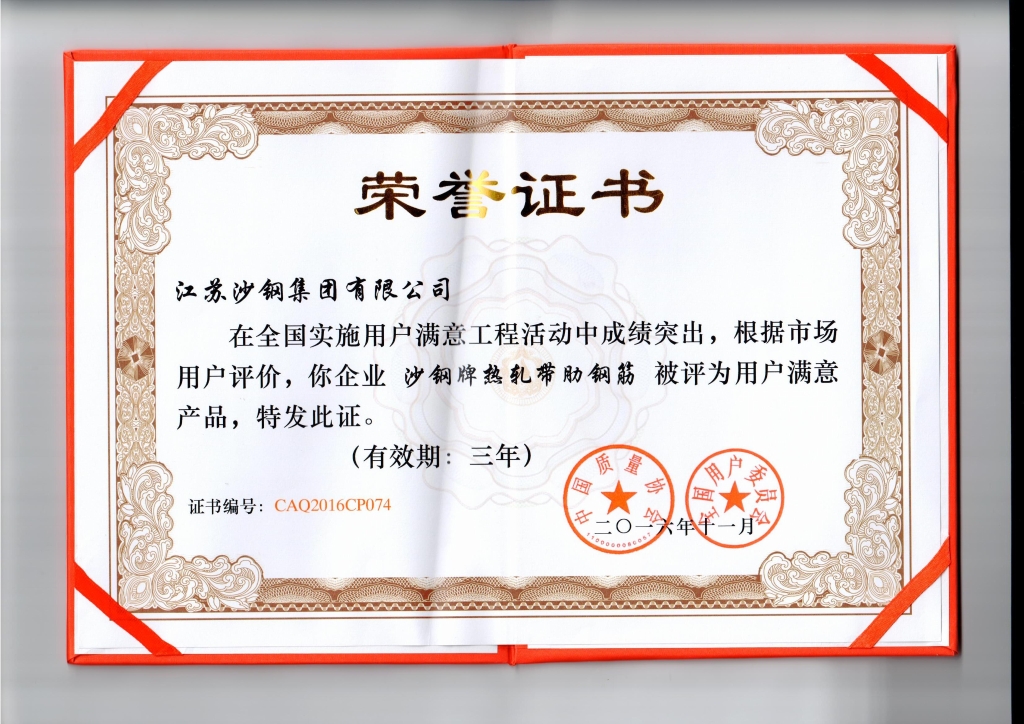 高新技術產品認定證書——600Mpa級抗震鋼筋